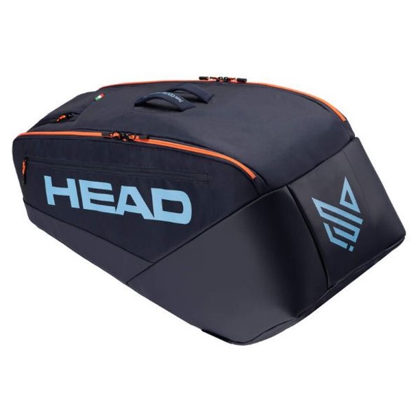 Die von Jannik Sinner inspirierte PRO RACQUET BAG L NV hat ein besonderes Design mit persönlichen Details, darunter orangefarbene Reißverschlüsse, die an die roten Haare des Italieners erinnern. Die hochwertige und geräumige Tasche bietet Platz für bis zu 9 Schläger, ist in Blau, der Nationalfarbe Italiens, gehalten und mit einer kleinen italienischen Flagge verziert. Für zusätzlichen Stil ist die Tasche mit dem persönlichen Logo des HEAD-Botschafters verziert, das aus einem „J“ für Jannik, einem „S“ für Sinner und einem Berg besteht, die zusammen wie ein Fuchs aussehen, seinem Spitznamen. Das Design enthält auch die Botschaft: „From Centre Court with love“ (Mit Liebe vom Centre Court). Im Inneren der Tasche ist das Netz mit kleinen Füchsen verziert.