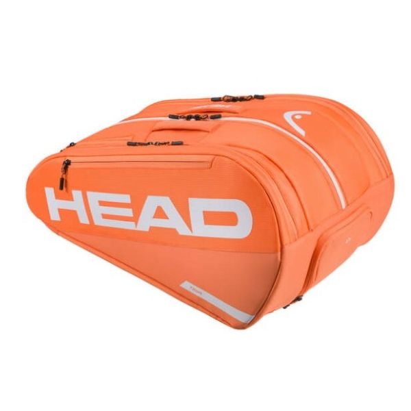 Ein lebendiges Orange-Design wird mit moderner, verbesserter Funktionalität in der TOUR PADEL BAG L OR kombiniert. Gefertigt aus einem neuen Stoff, verfügt diese Tasche nun über zwei neue große äußere Reißverschlusstaschen für Zubehör sowie eine neue äußere Handytasche, die schnellen und einfachen Zugriff ermöglicht. In den drei Hauptfächern, von denen eines mit der CCT+ Klimakontrolltechnologie ausgestattet ist, um Ihre Schläger vor extremen Temperaturen zu schützen, können Sie bis zu 7 Schläger transportieren. Die Pflege Ihrer Habseligkeiten ist einfach mit einer Tasche, die auch eine innere Reißverschlusstasche für Zubehör und ein integriertes Schuhfach hat, und die Rucksackgurte ermöglichen es Ihnen, diese bequem zu tragen. Als Beispiel dafür, wie HEAD versucht, den Plastikverbrauch zu reduzieren, besteht das Etikett aus recyceltem Papier und ist mit Hanfschnur gebunden, und die Tasche wird in einer recycelten Plastiktüte präsentiert.